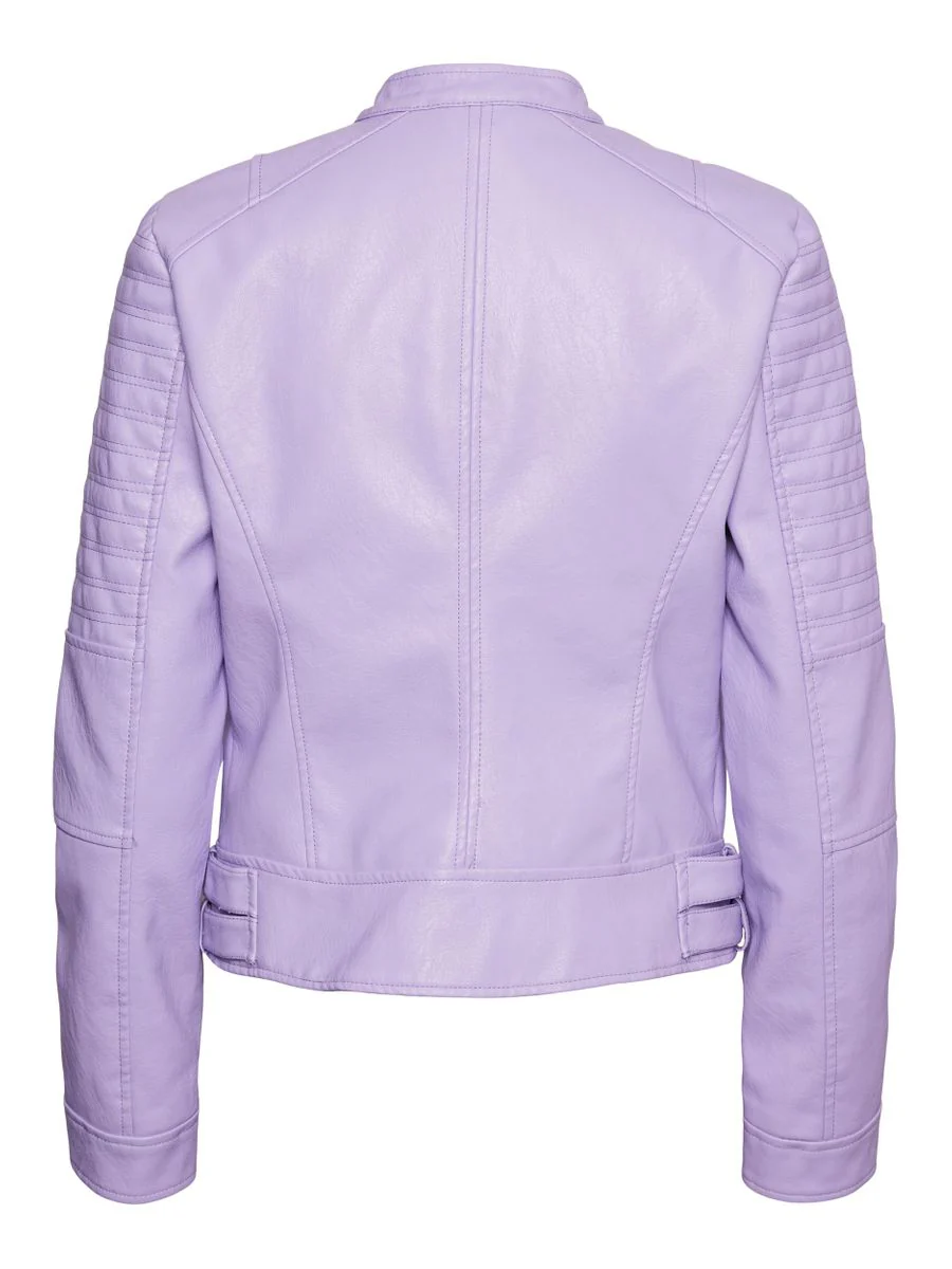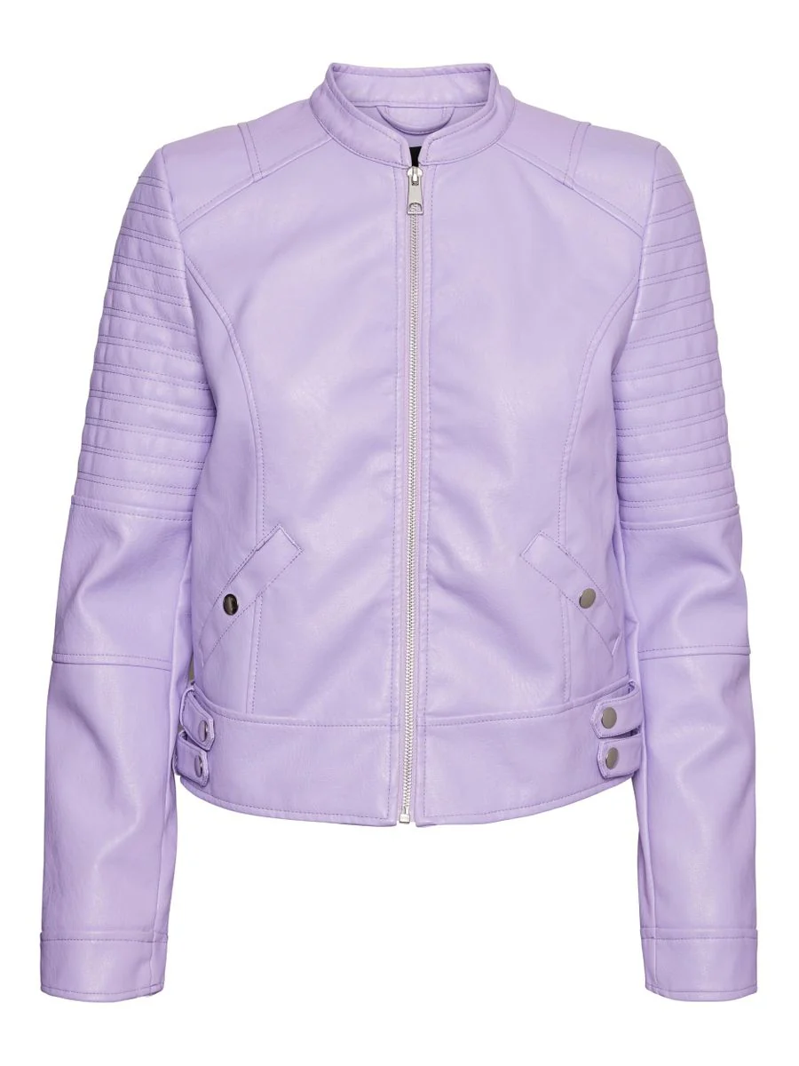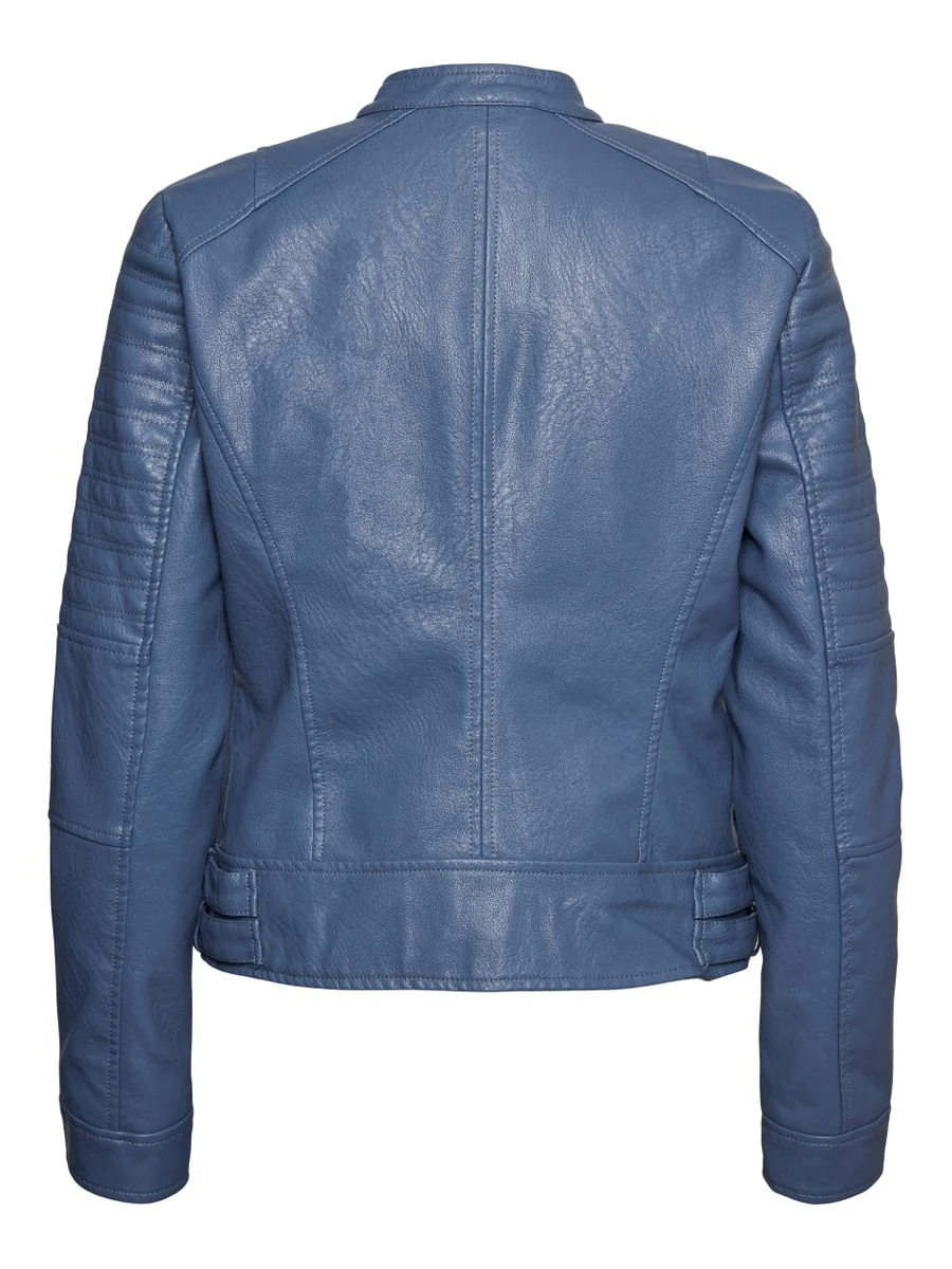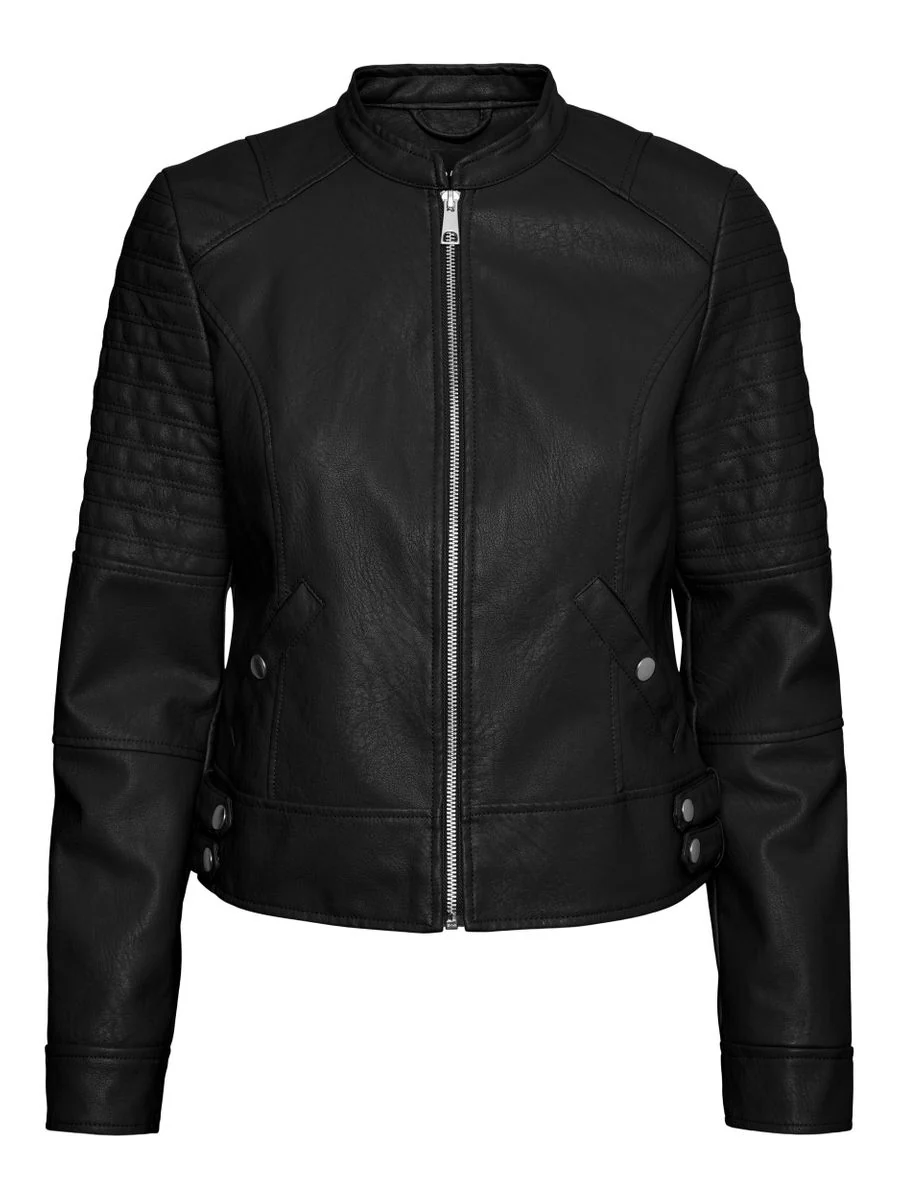 10256018 – Giacca in eco pelle basica con impunture sulle braccia.
