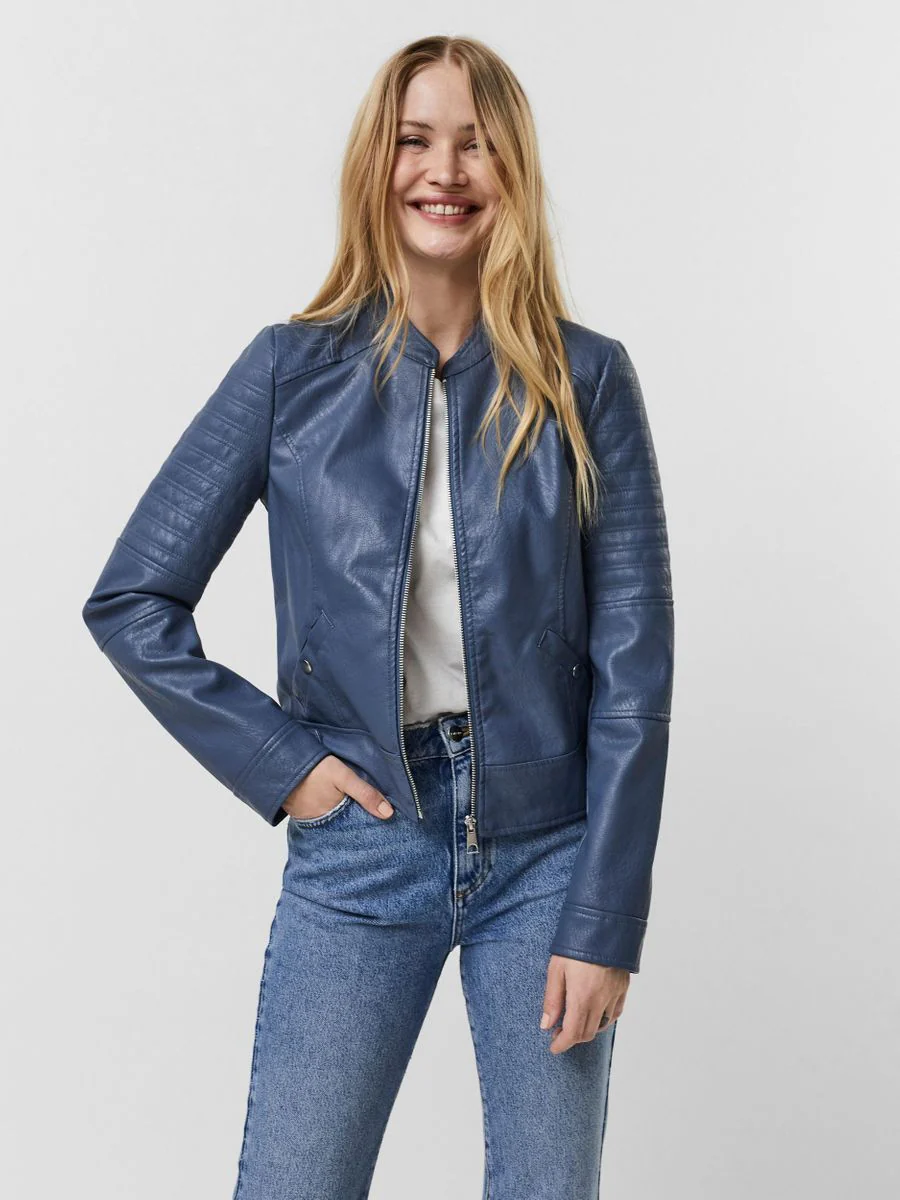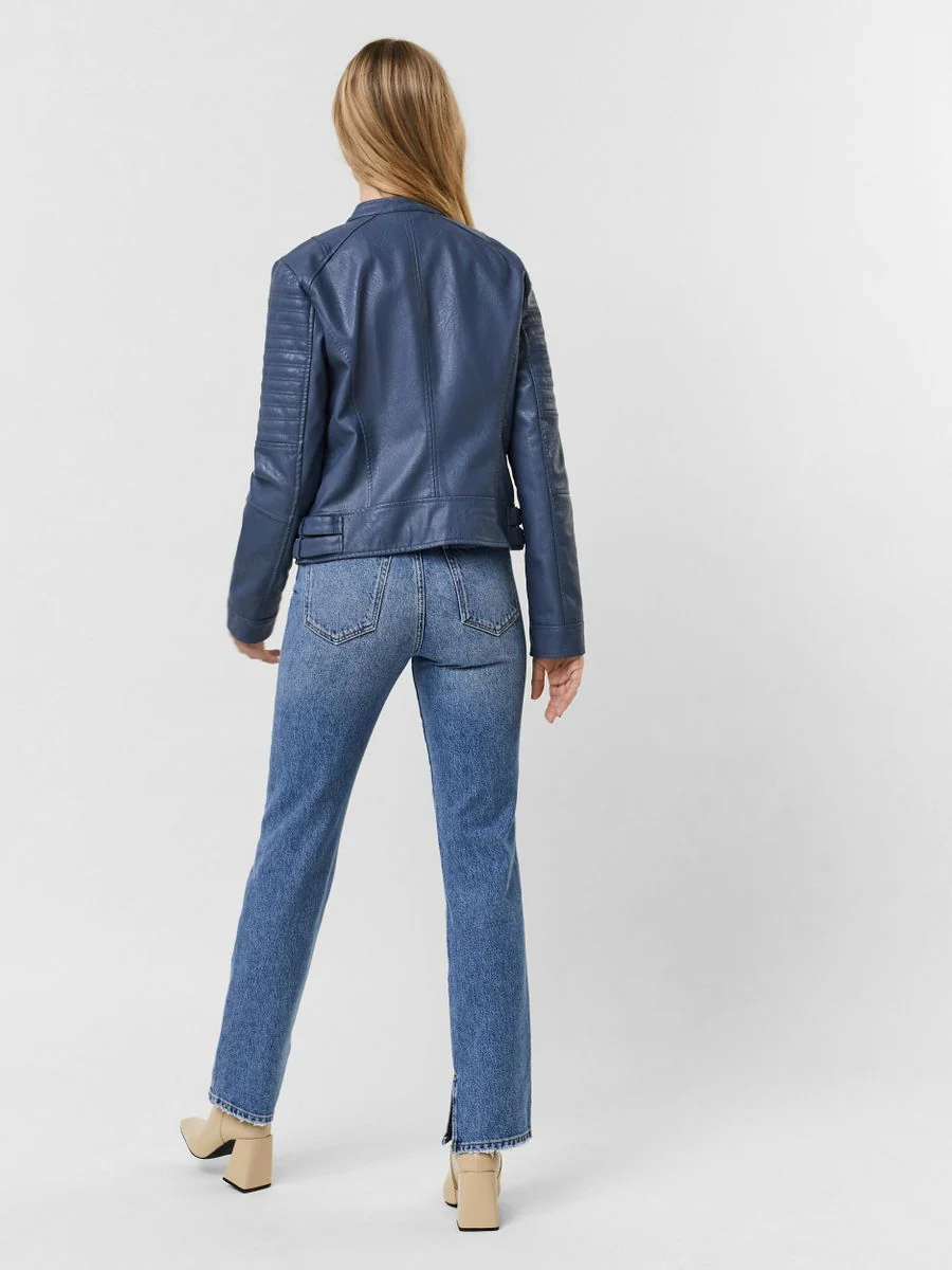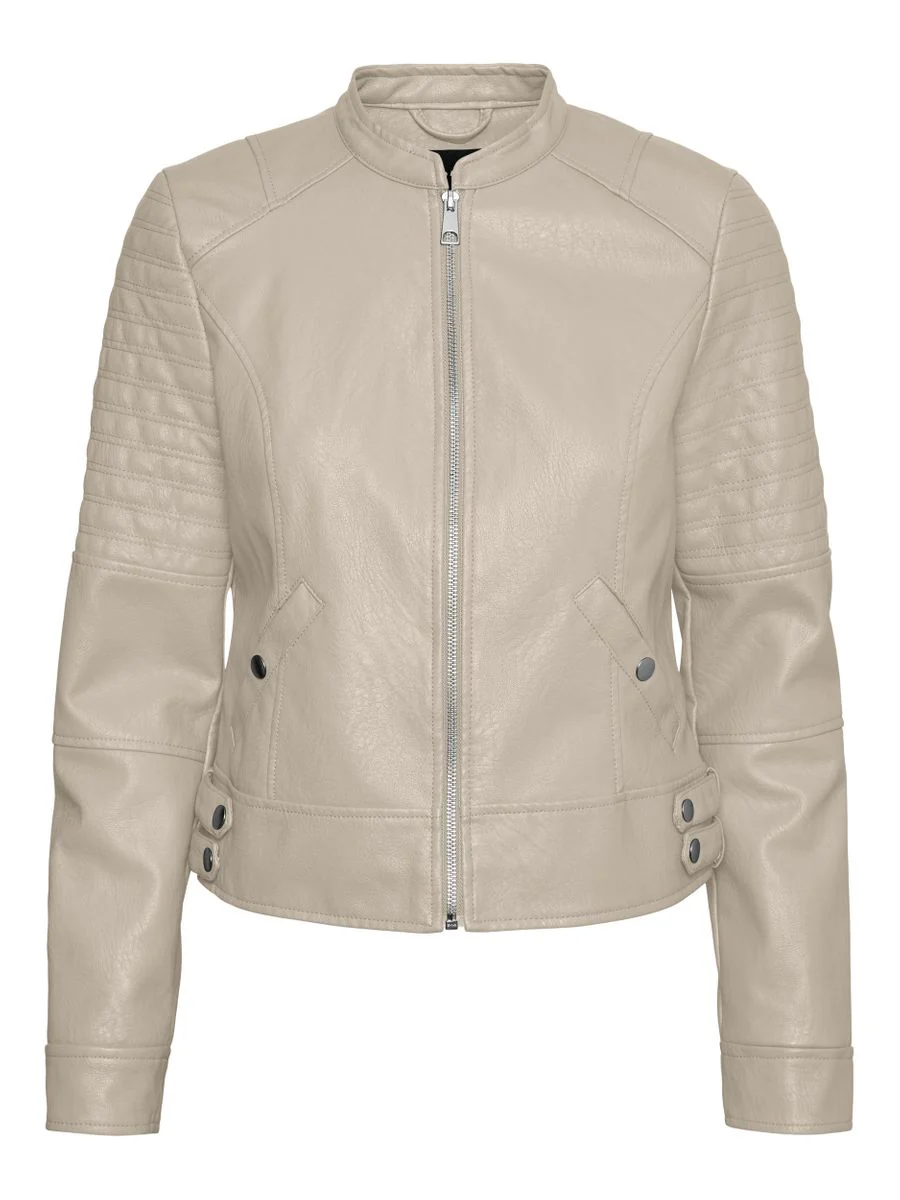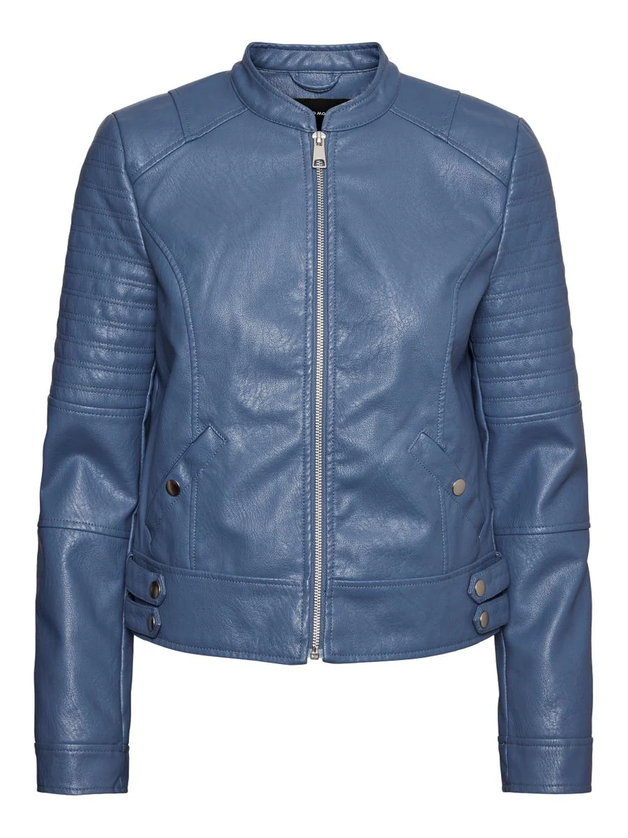 10256018 – Giacca in eco pelle basica con impunture sulle braccia.
