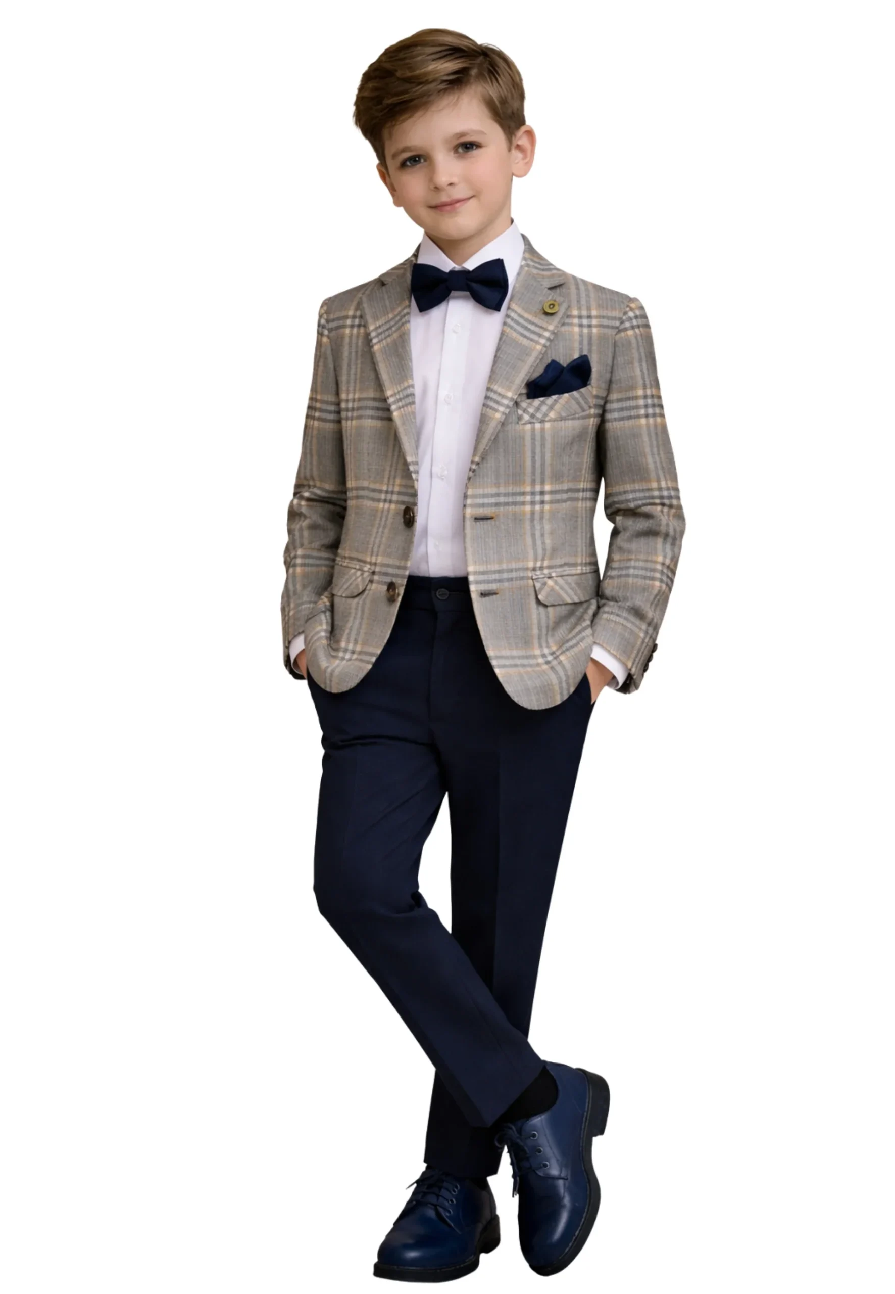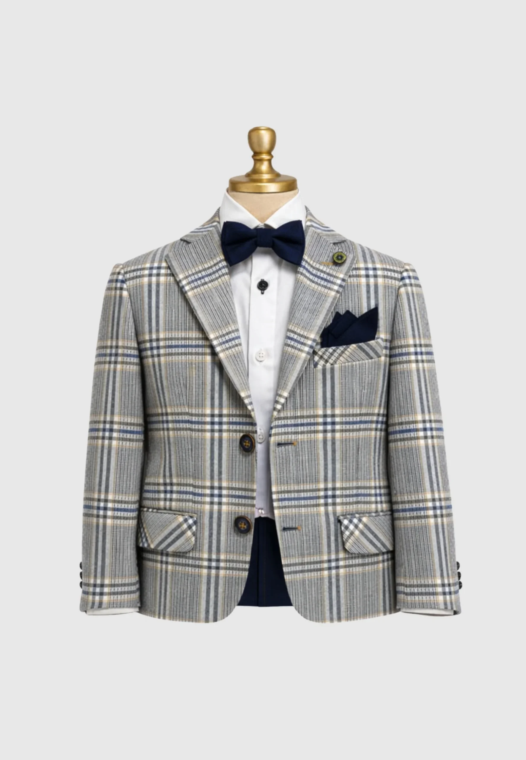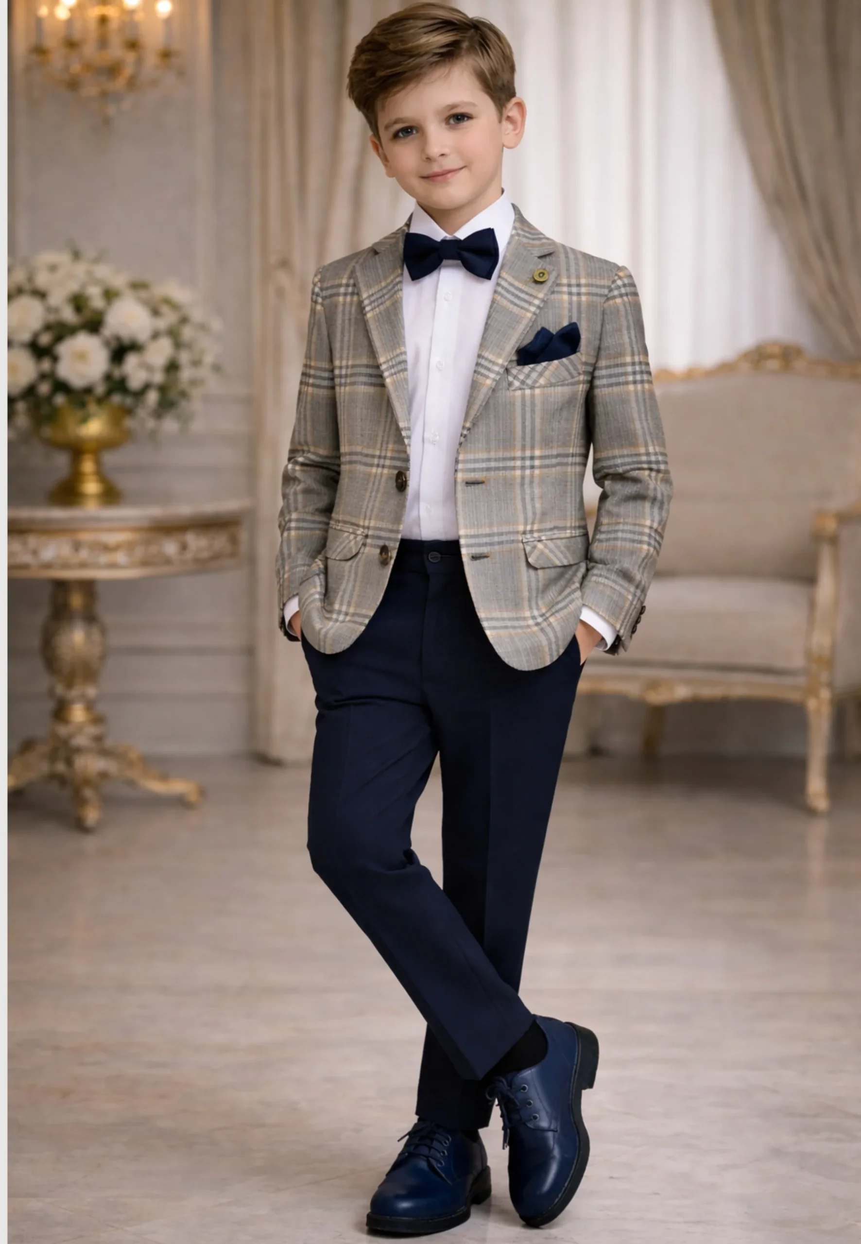Completo bambino 4 pezzi, fantasia quadri blu bianco