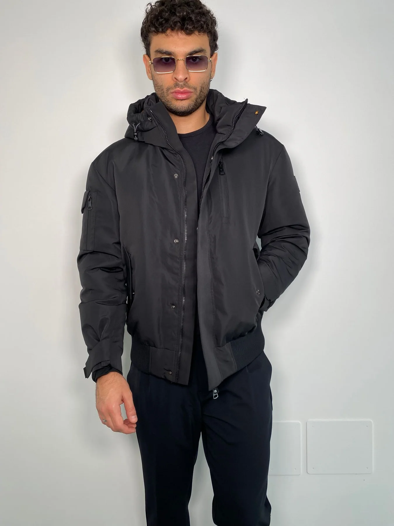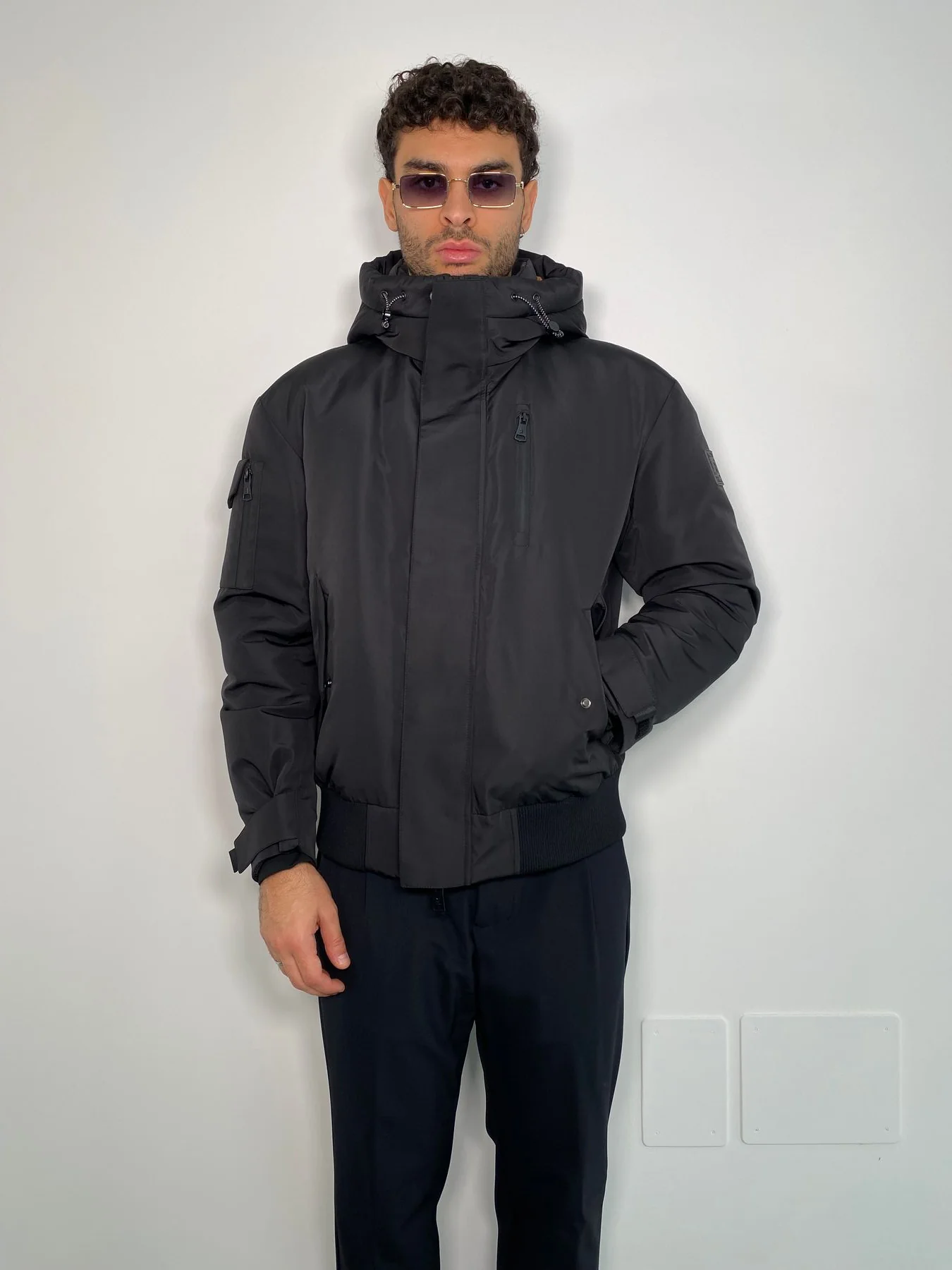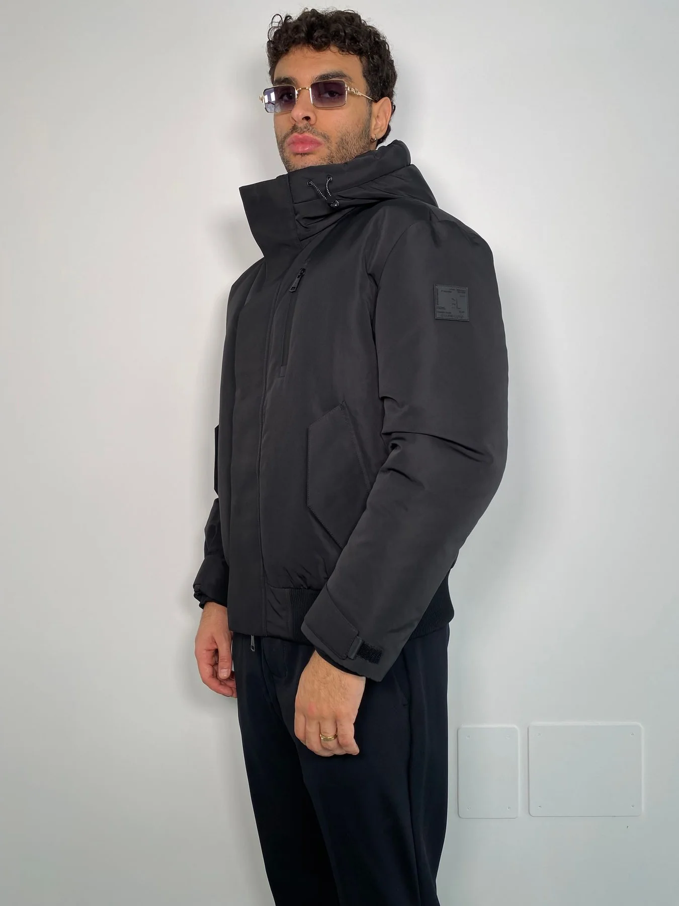 BOMBER FODERATO IN PURO COTONE CON PATCH APPLICATE E MAXI COULISSE E CAPPUCCIO REMOVIBILE – OVER FIT M252282-8