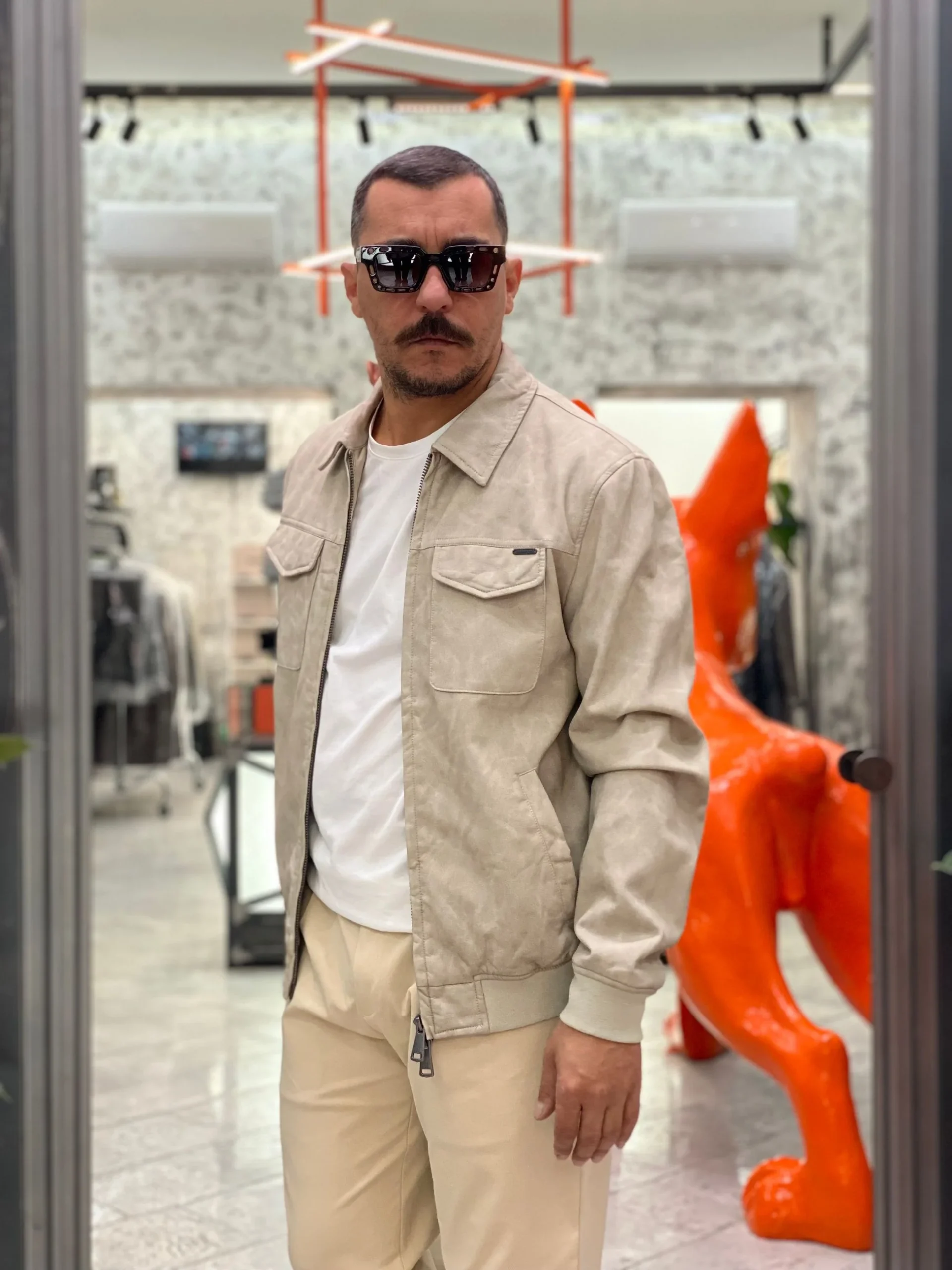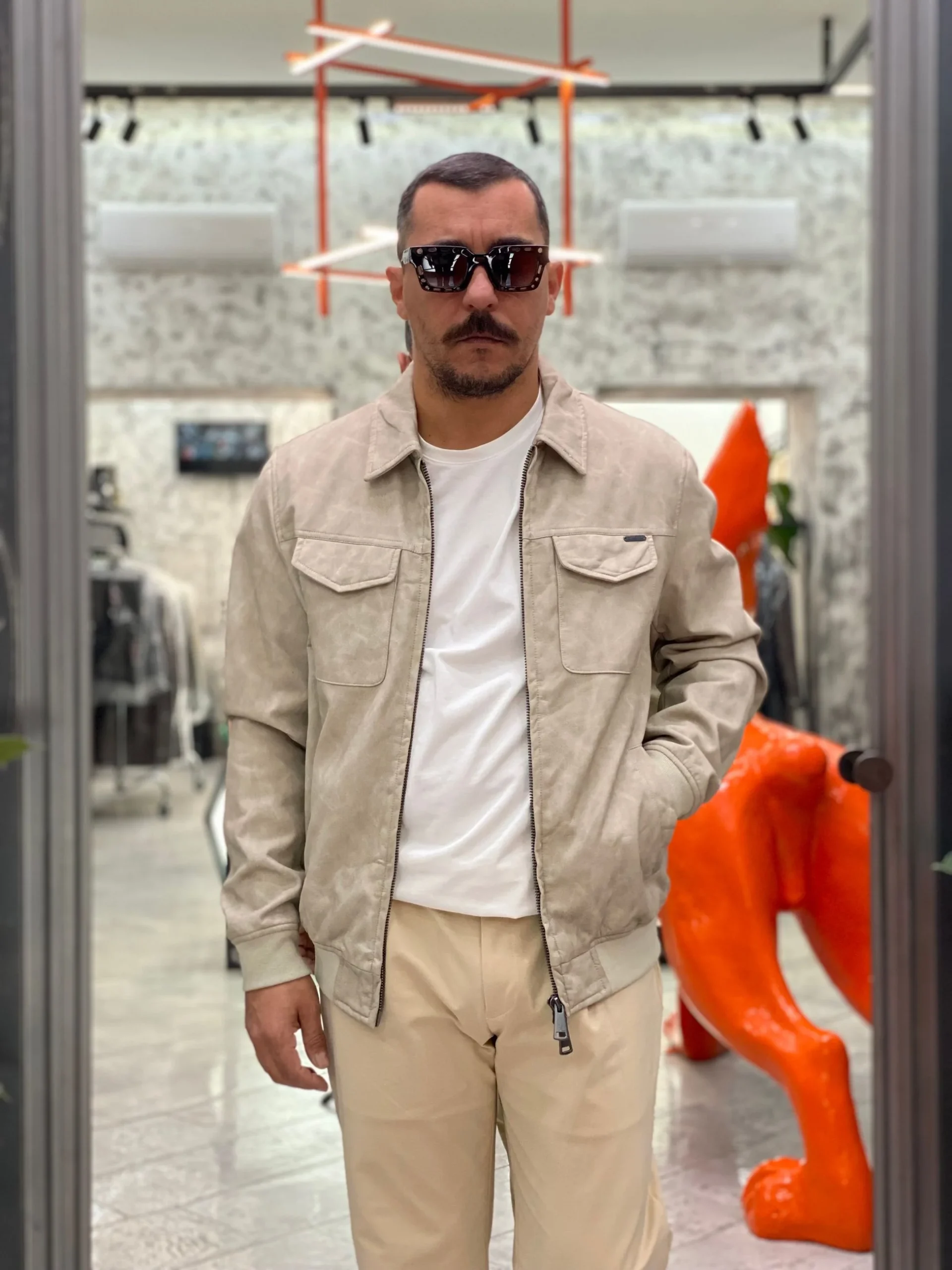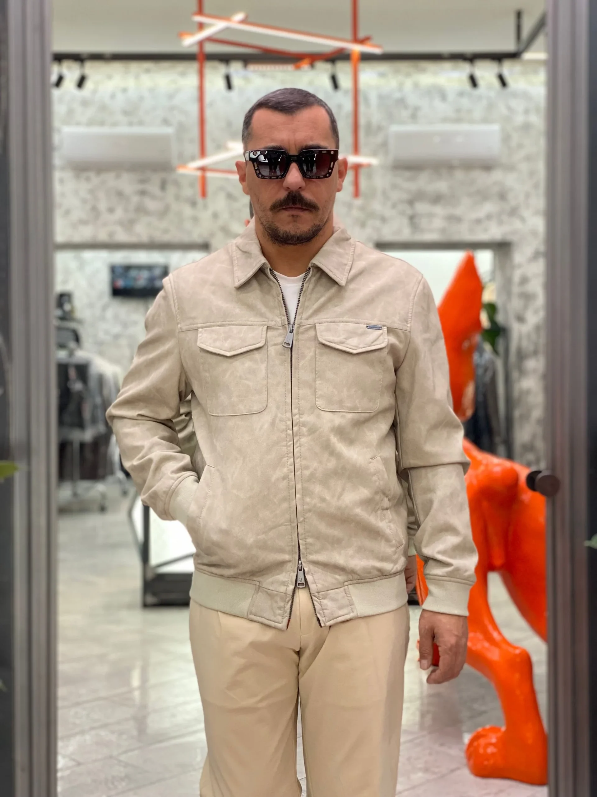GIUBBINO IN ECORENNA CON TASCHINI E TASCHE A FILO CHIUSURA ZIP – REGULAR FIT GL9821.BEI