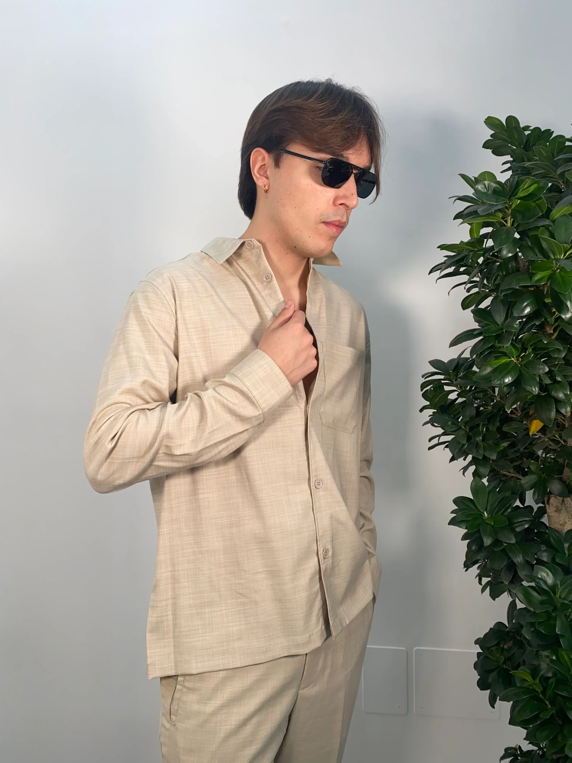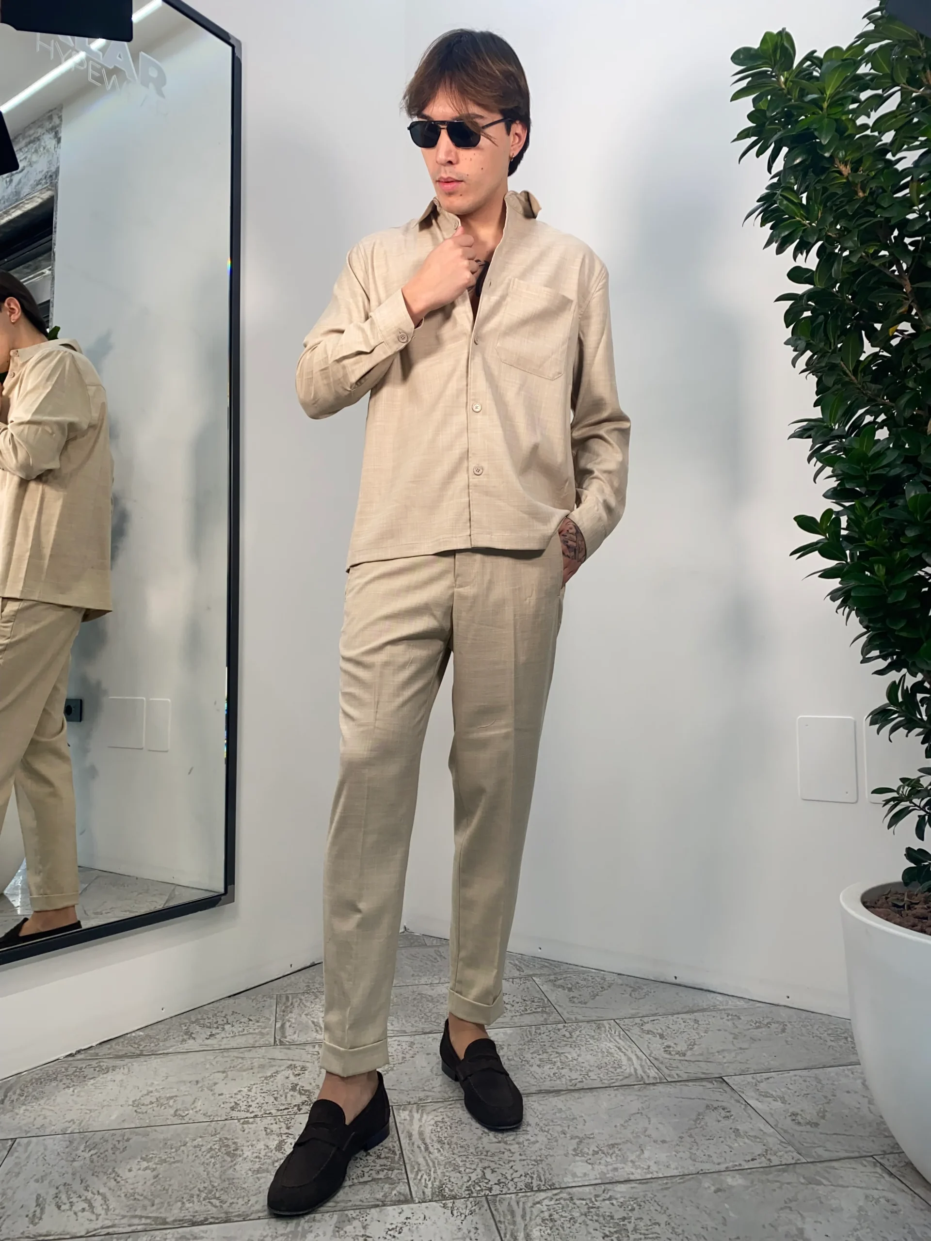 OVERSHIRT DA COORDINATO IN TESSUTO FIAMMATO CON TASCHINO – RELAXED FIT GBE1010SS.ECR