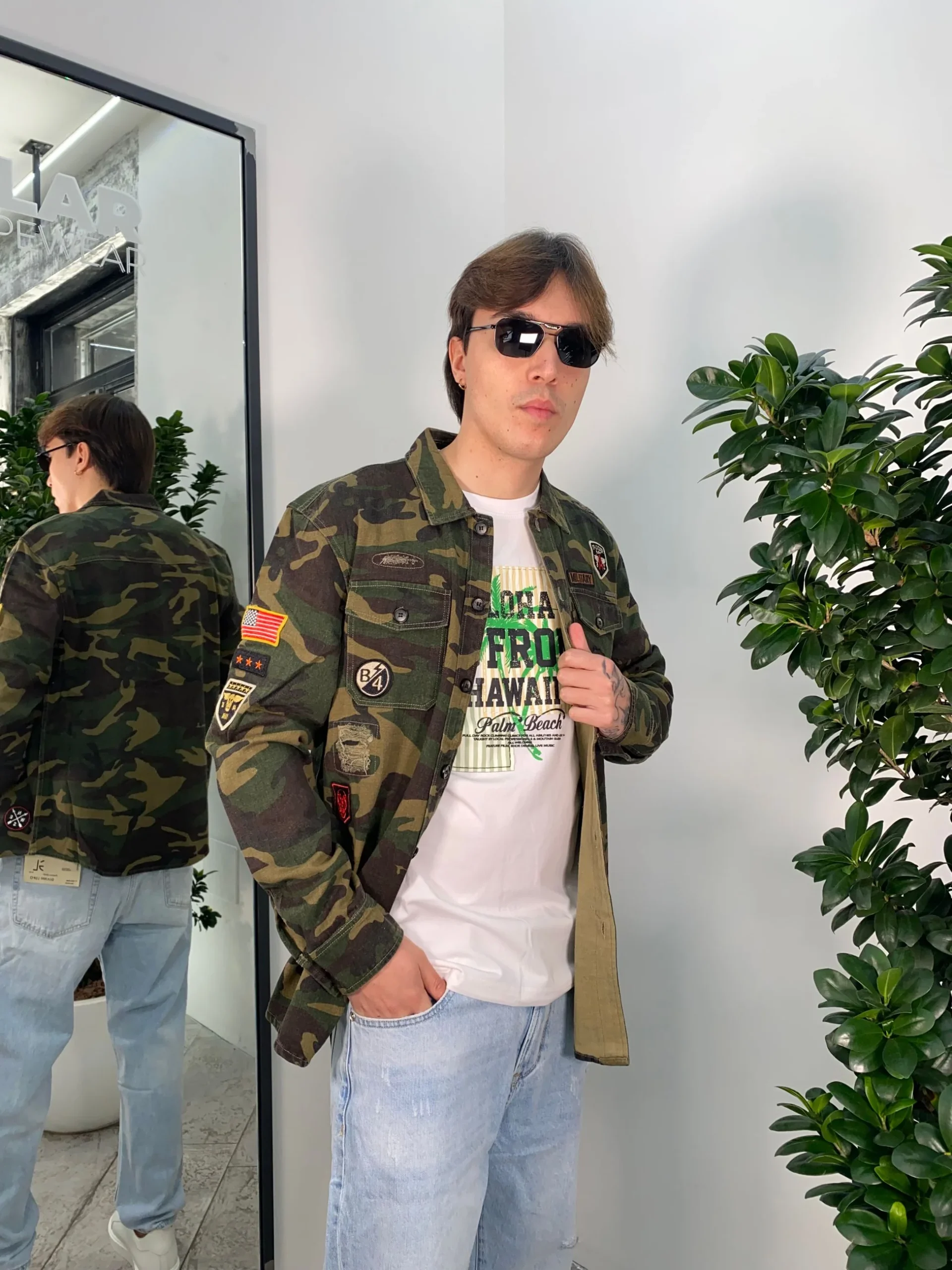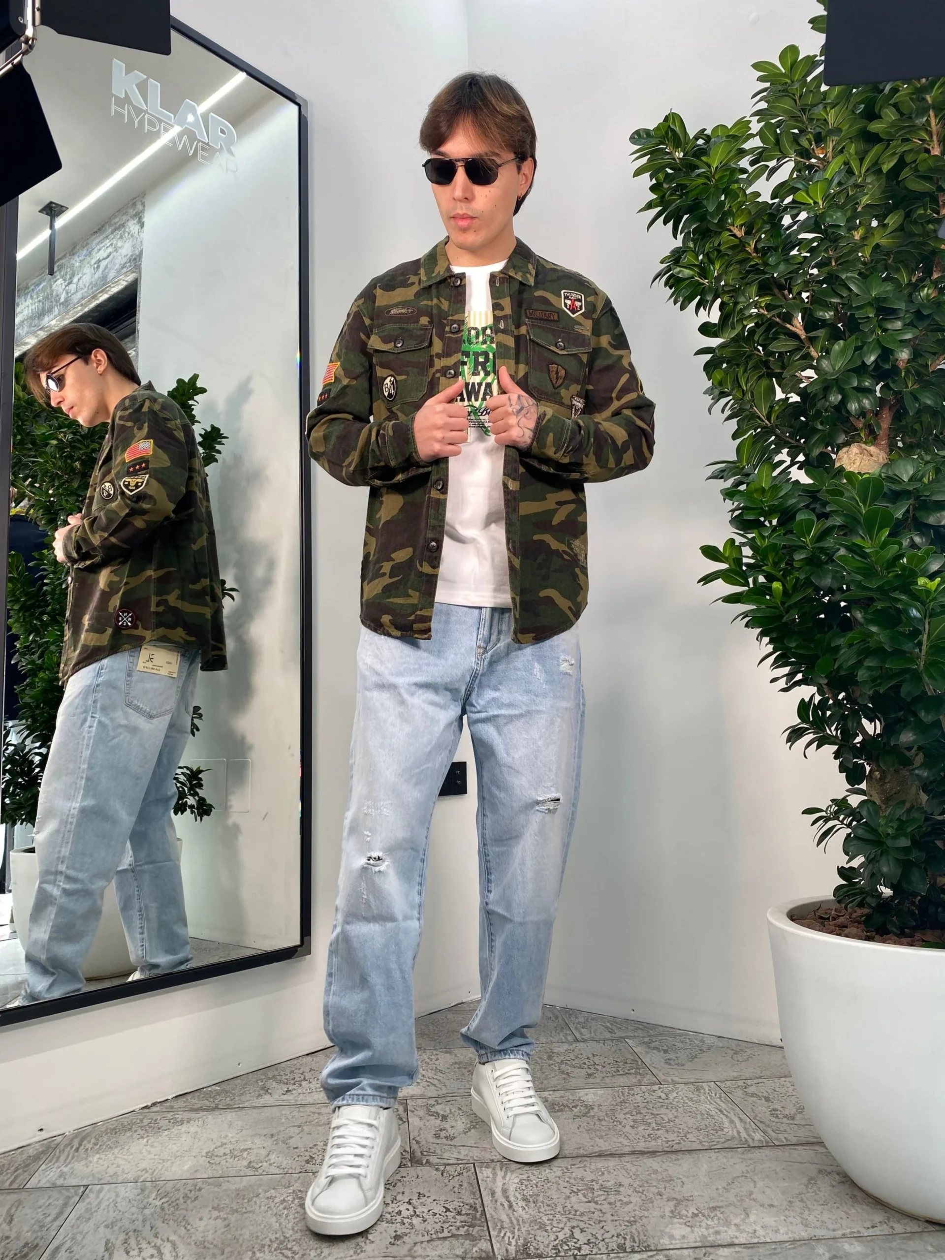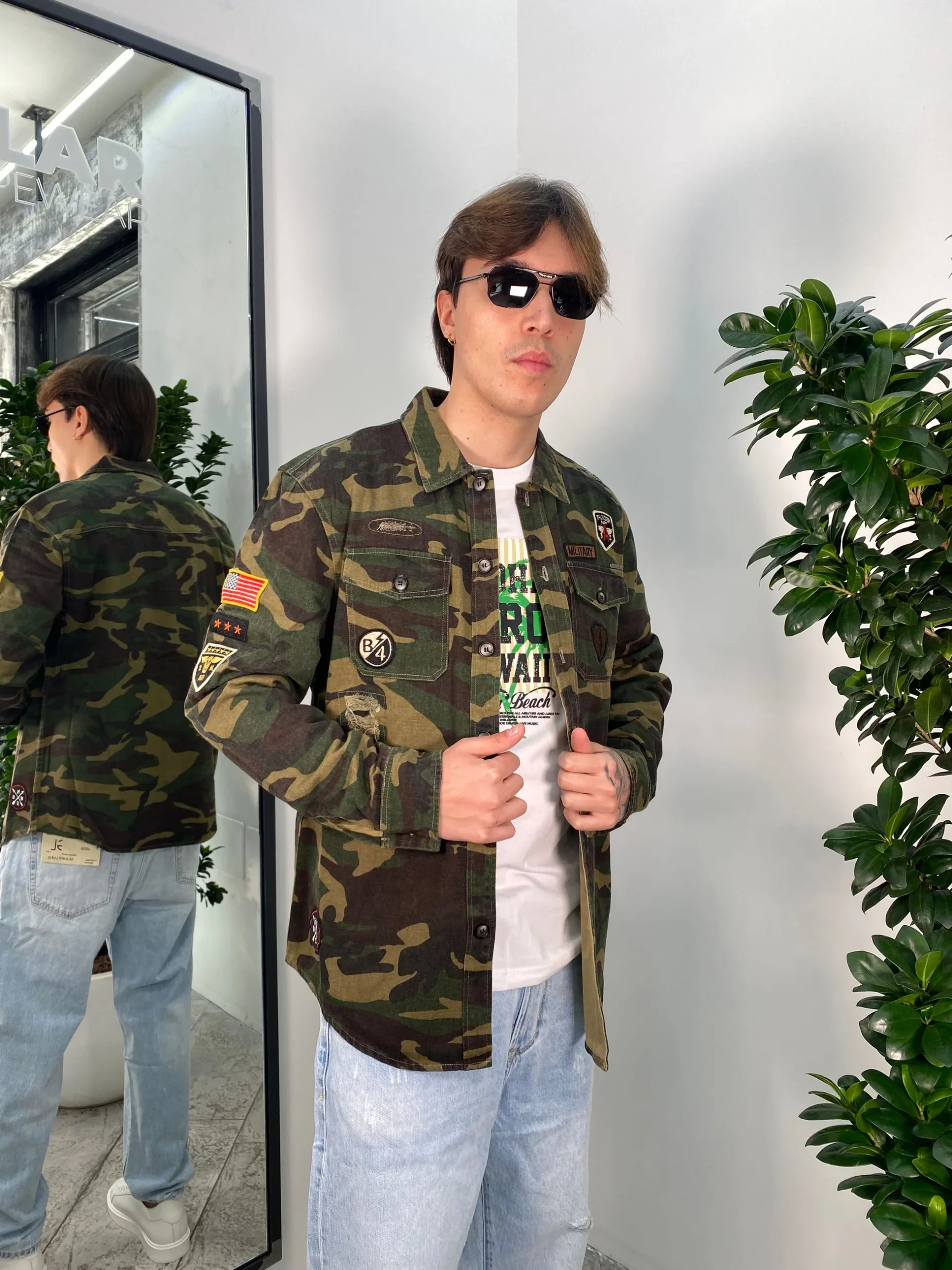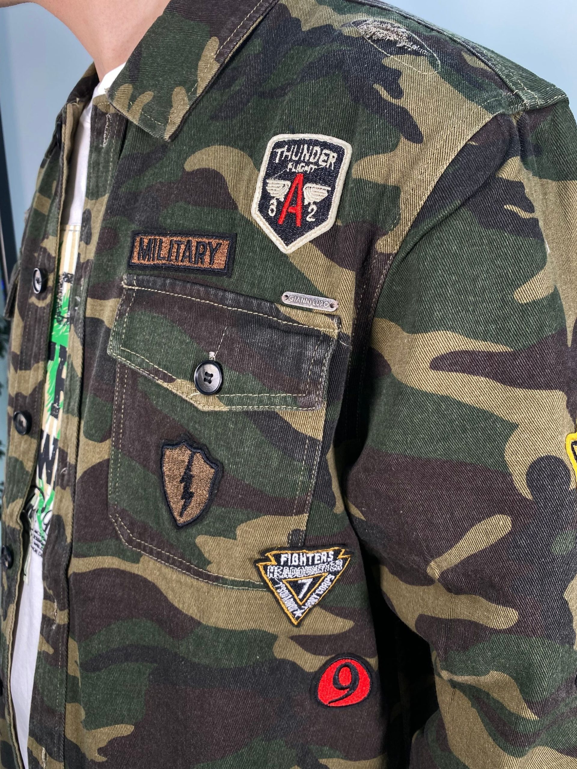 OVERSHIRT MILITARE CON PATCH E ABRASIONI GL333R