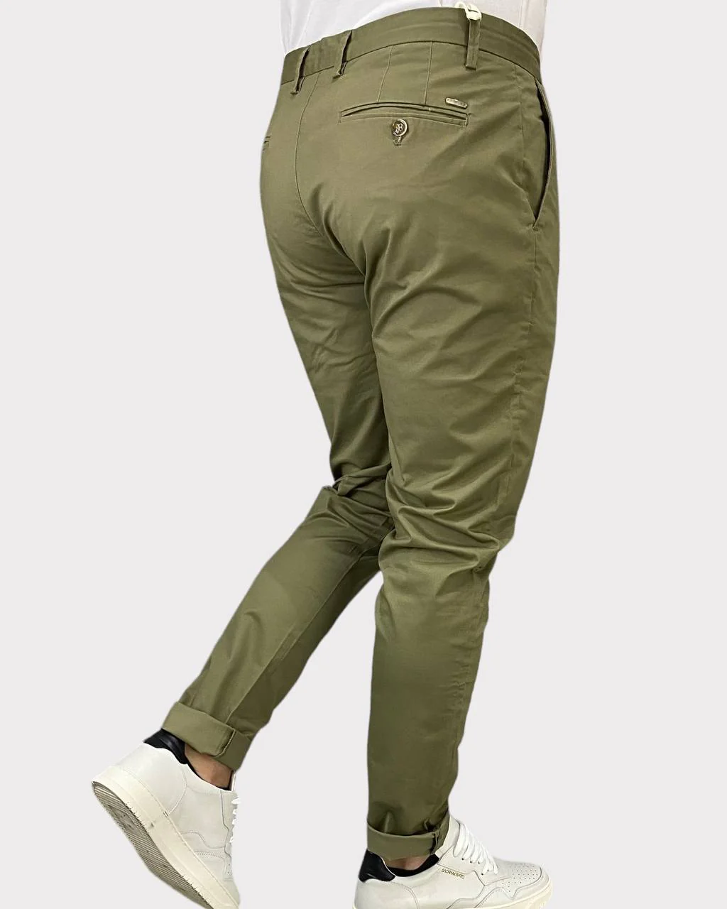 PANTALONE CHINOS TASCA AMERICA CON DETTAGLI SARTORIALI IN COTONE ELASTICIZZATO – SLIM FIT