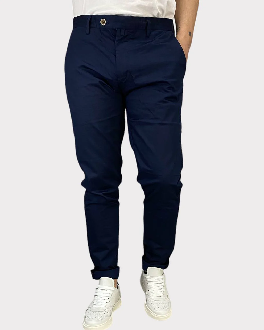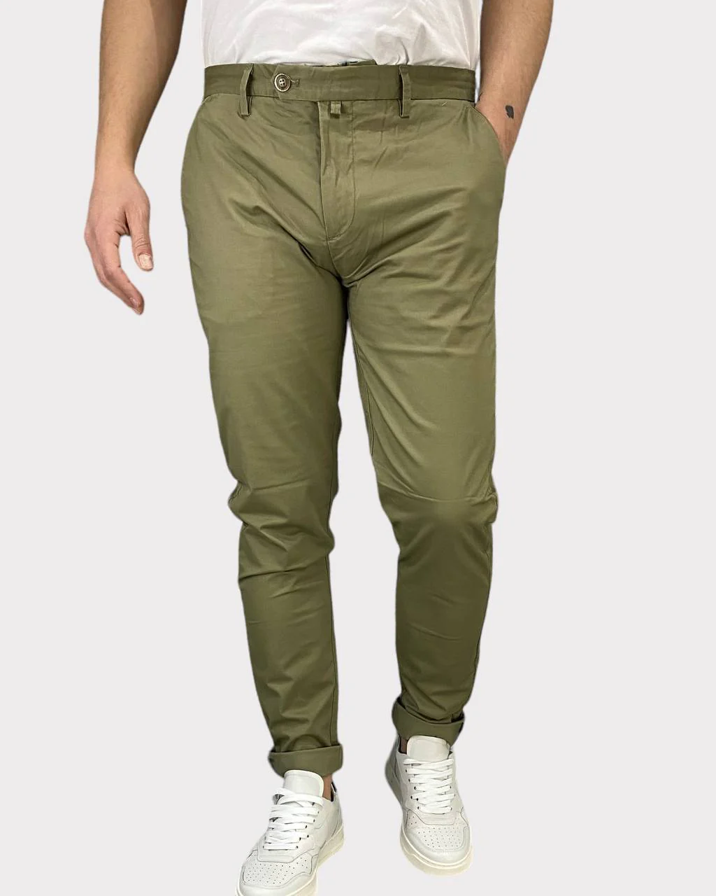 Questi pantaloni chinos sono realizzati in morbido cotone elasticizzato e presentano dettagli sartoriali raffinati. Il modello alto 1,81m per 75kg indossa la taglia 48 e garantisce comfort e stile sia in ufficio che nei momenti di relax. Scopri ora i vantaggi di questo versatile e sofisticato capo d’abbigliamento!