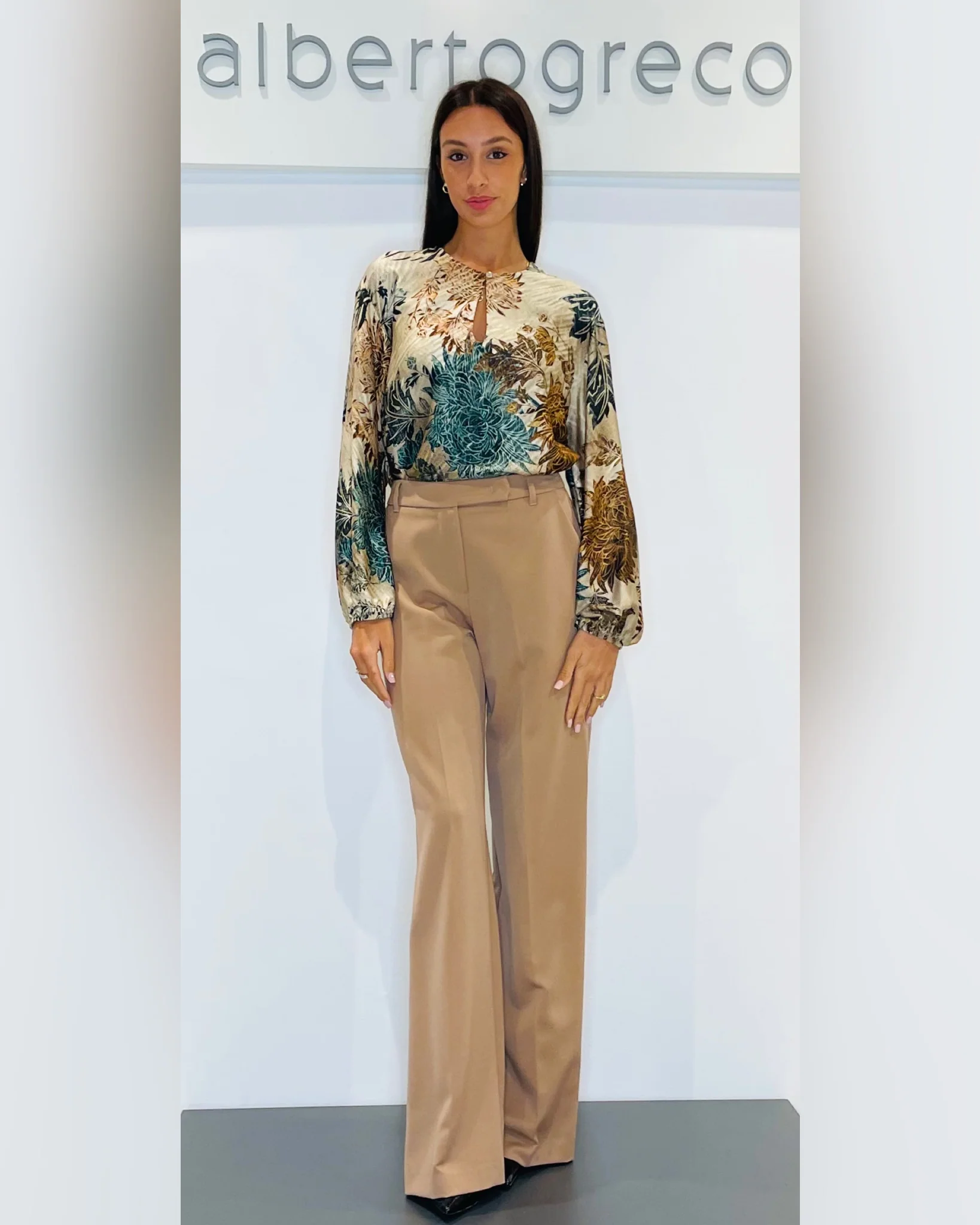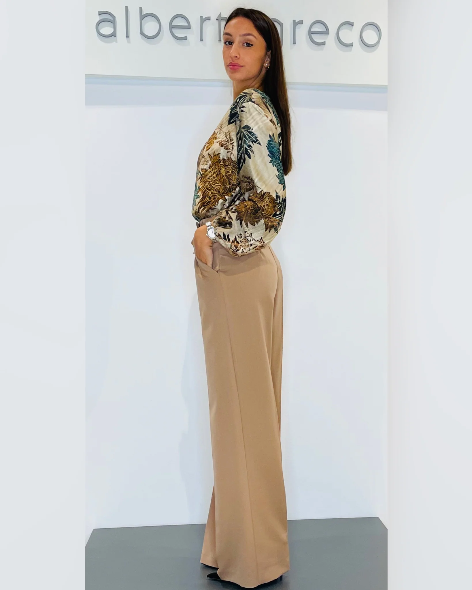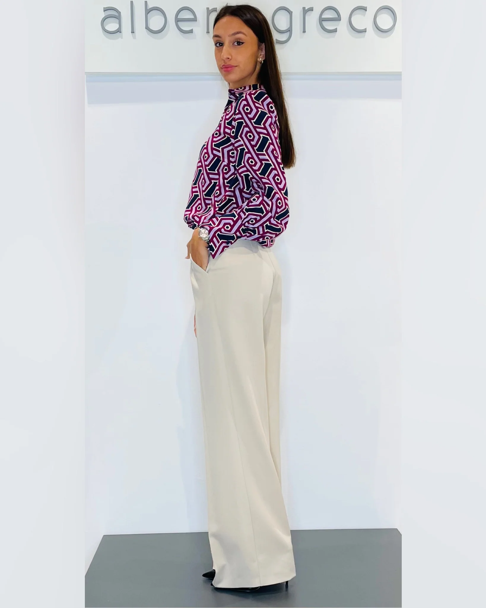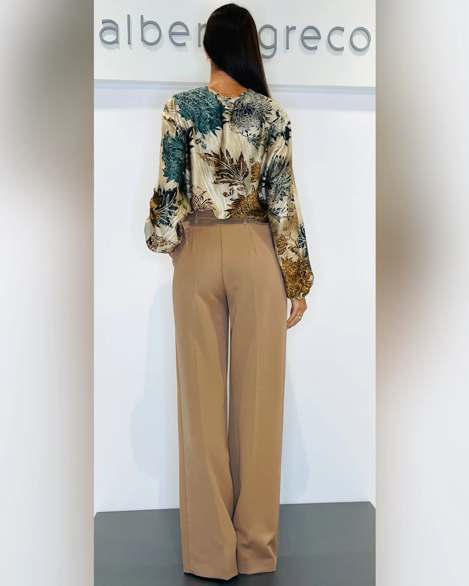 Pantaloni a palazzoVestibilità regolareCintura con passanti, tasca alla franceseChiusura con zip e bottone nel centro davanti Lavare a mano 30°Tessuto 70%PL 25%VI 5%EAMade in Italy