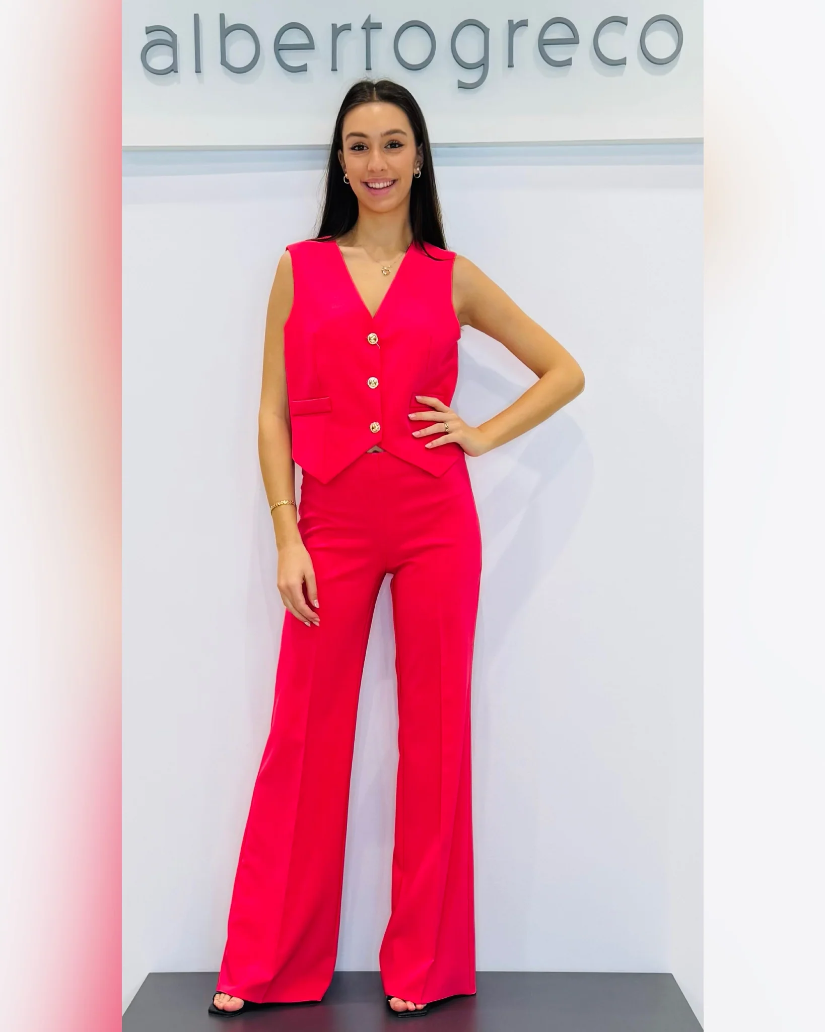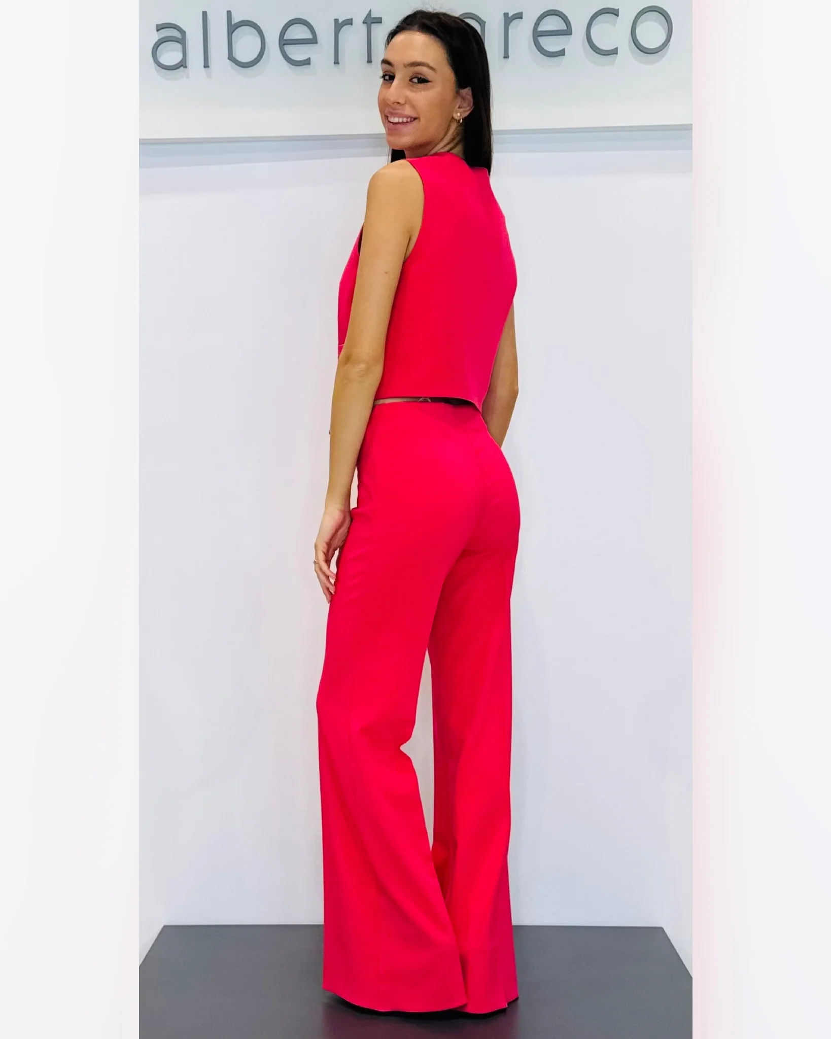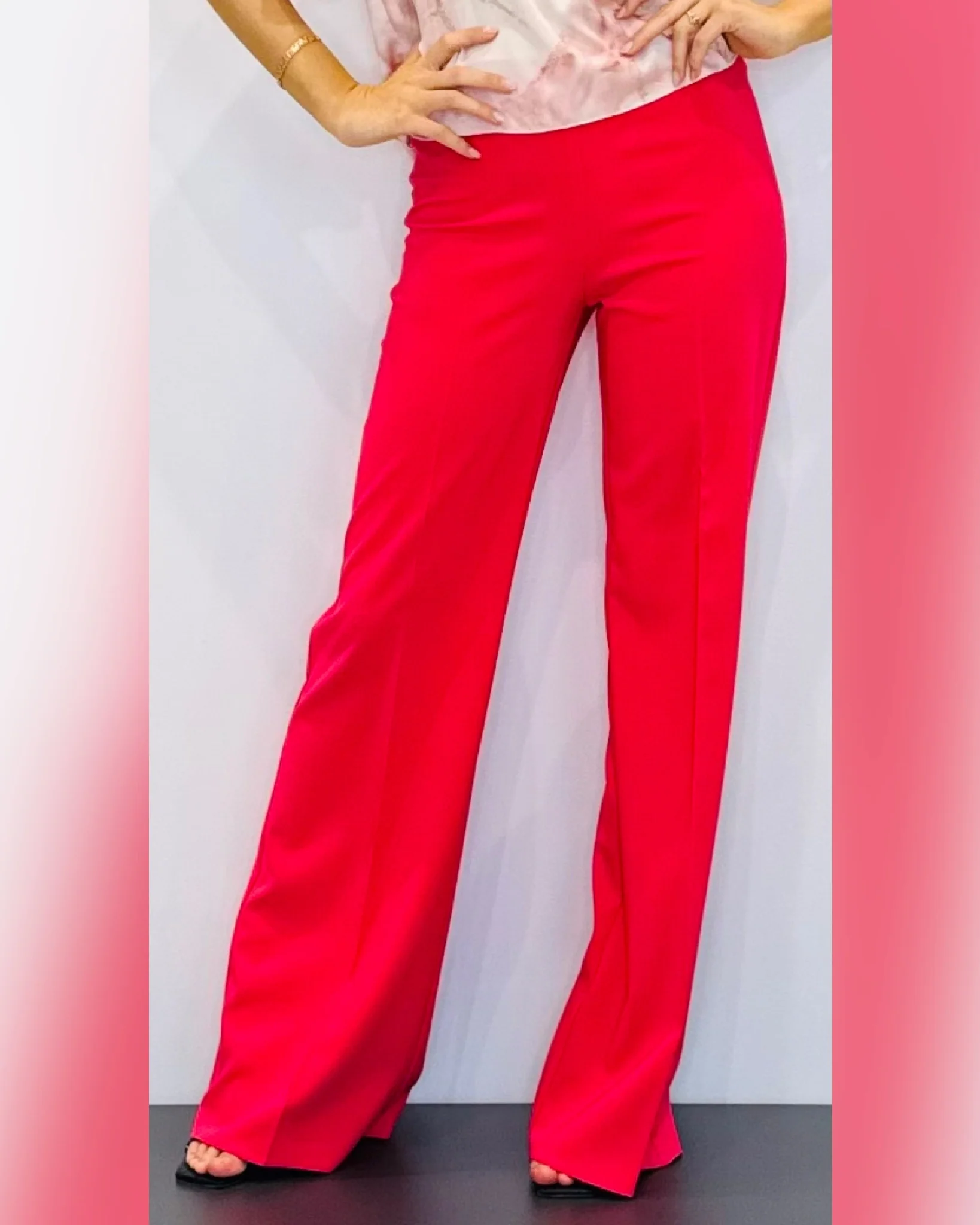 Pantaloni a palazzoPantaloni ampi a palazzoVestibilità regolareZip invisibile sul fianco sinistroLavare a 30°Tessuto 90%PL 10%EAMade in Italy