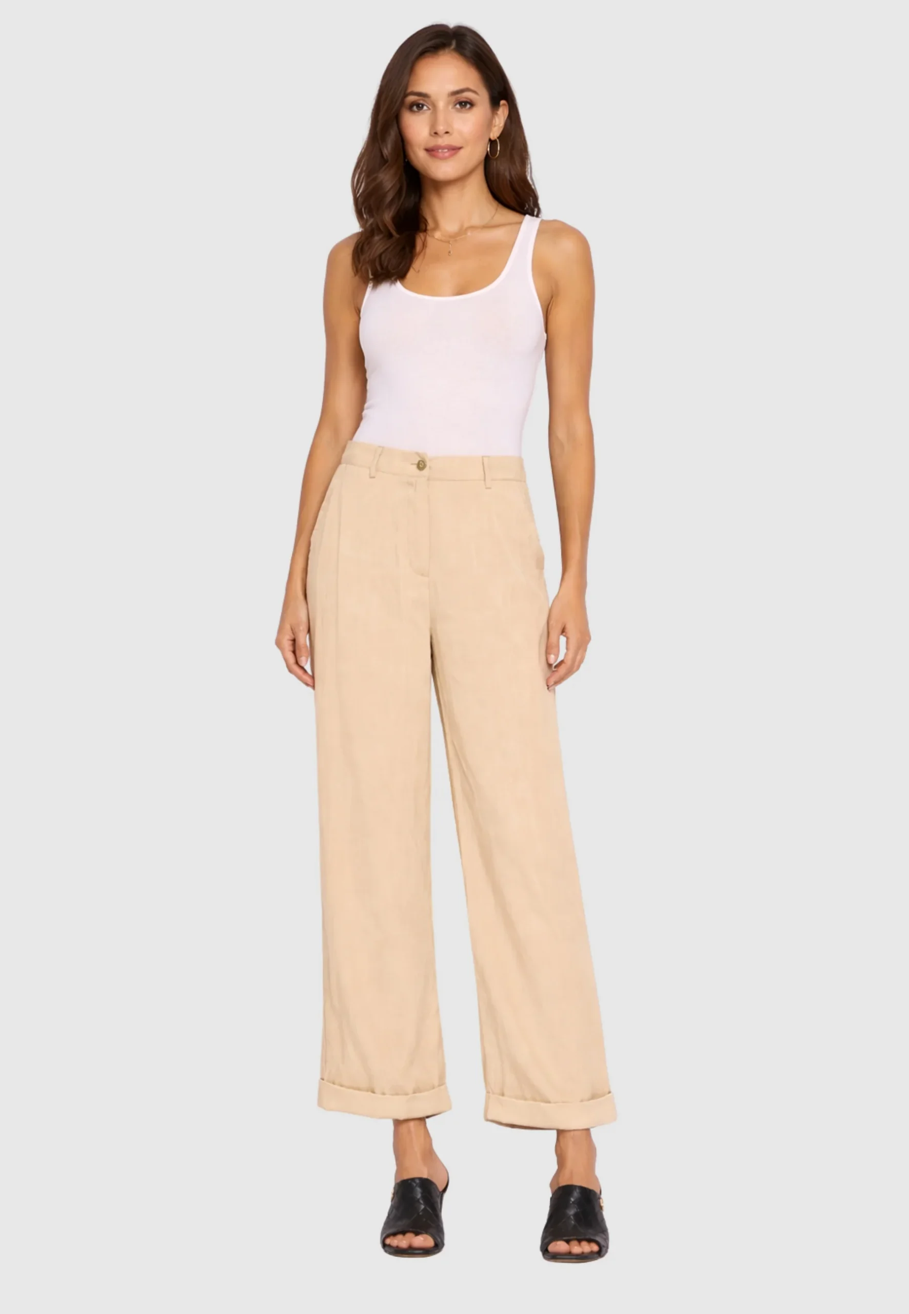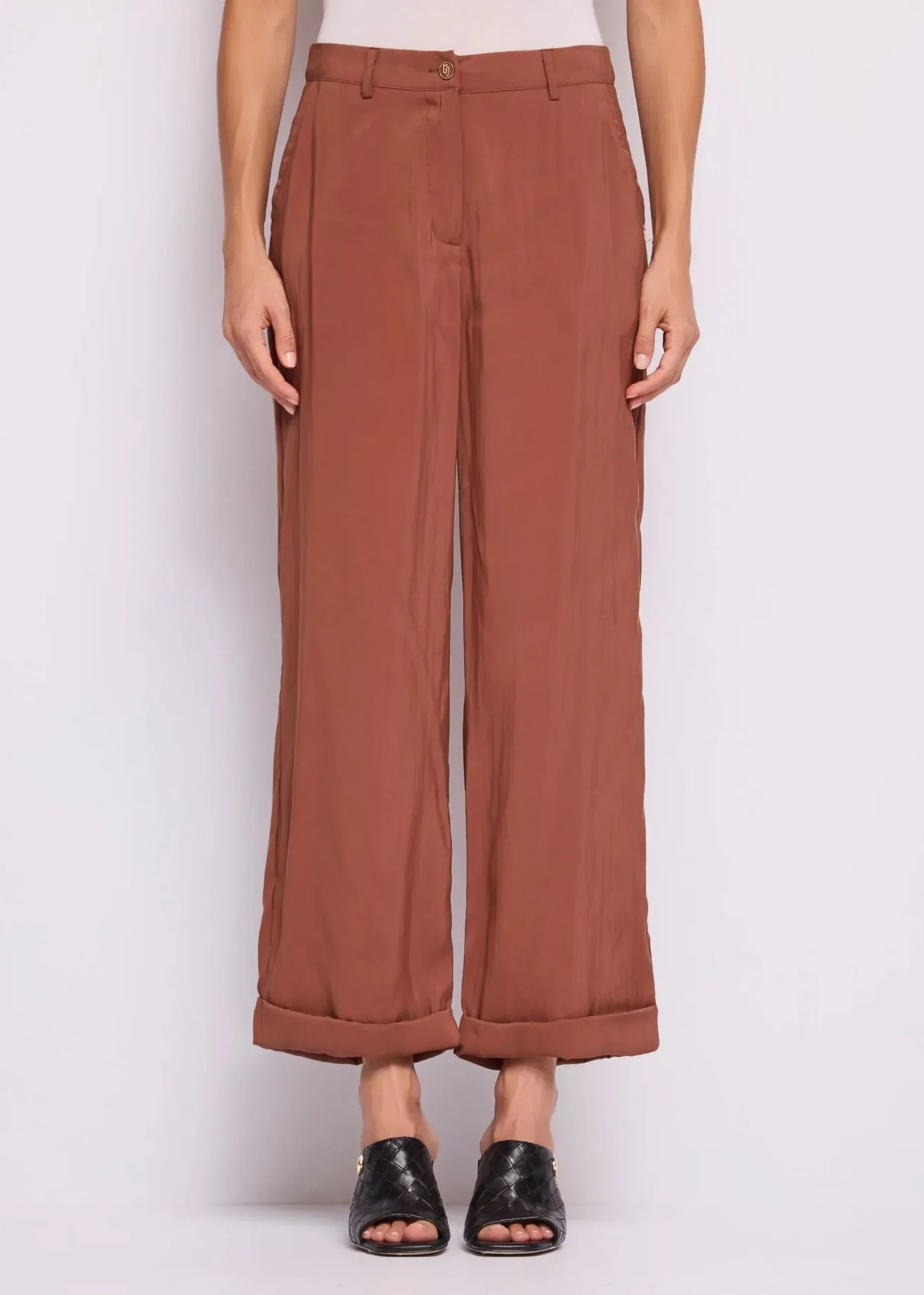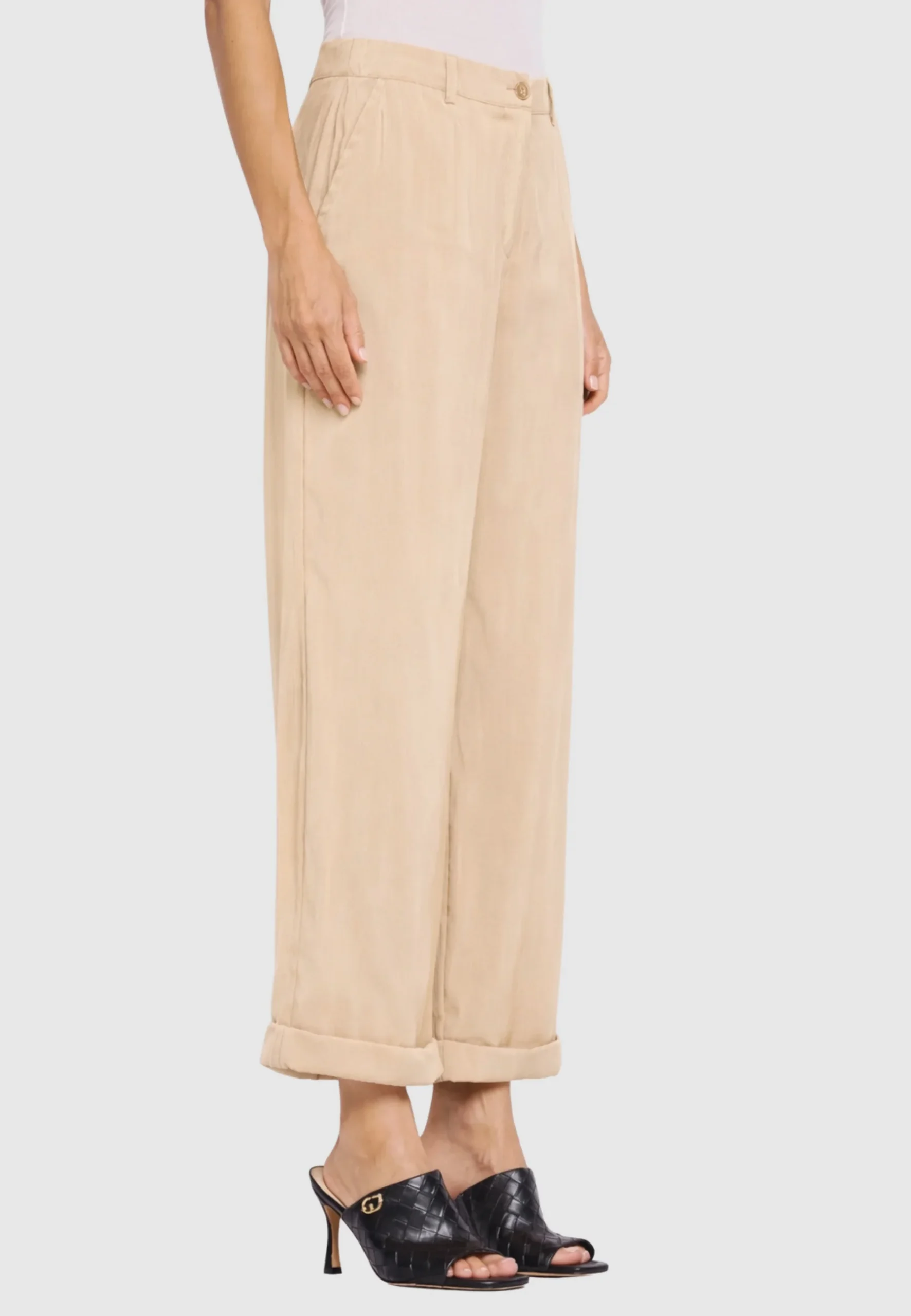 Pantalone a palazzo con risvolto all’orlo.