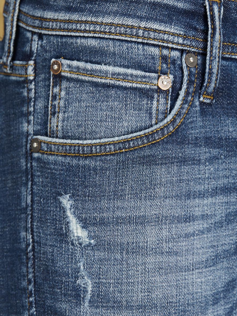 Jeans Tim regular, lavaggio scambiato con rotture e cuciture a vista.