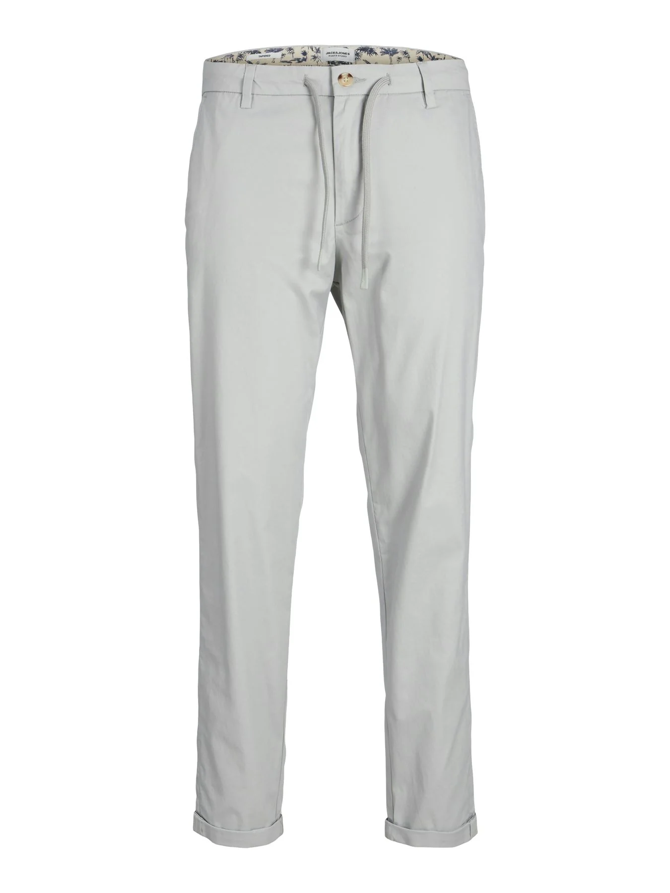 Pantalone Chino, vita normale con laccetto, gamba stretta e orlo all’orlo.