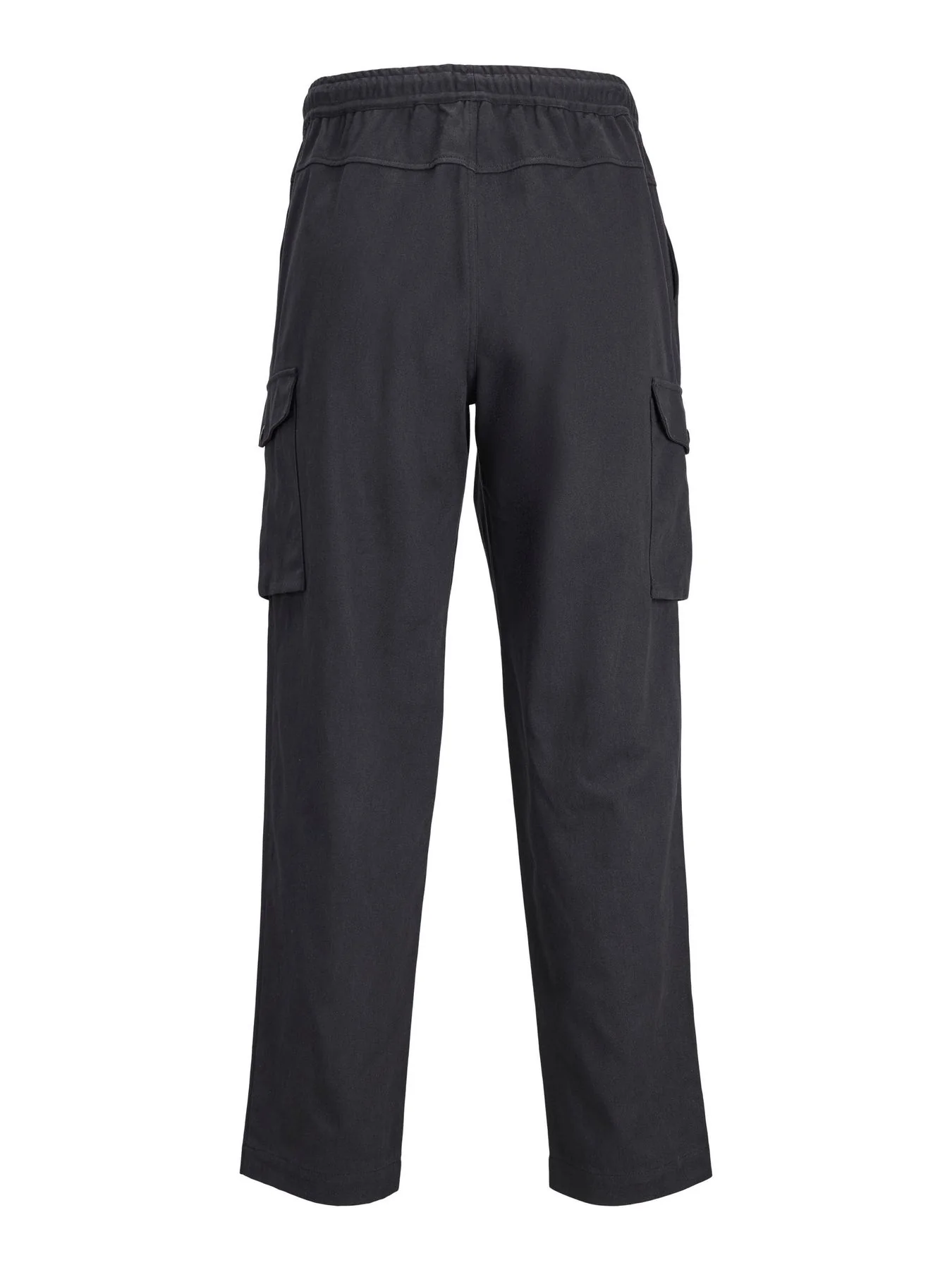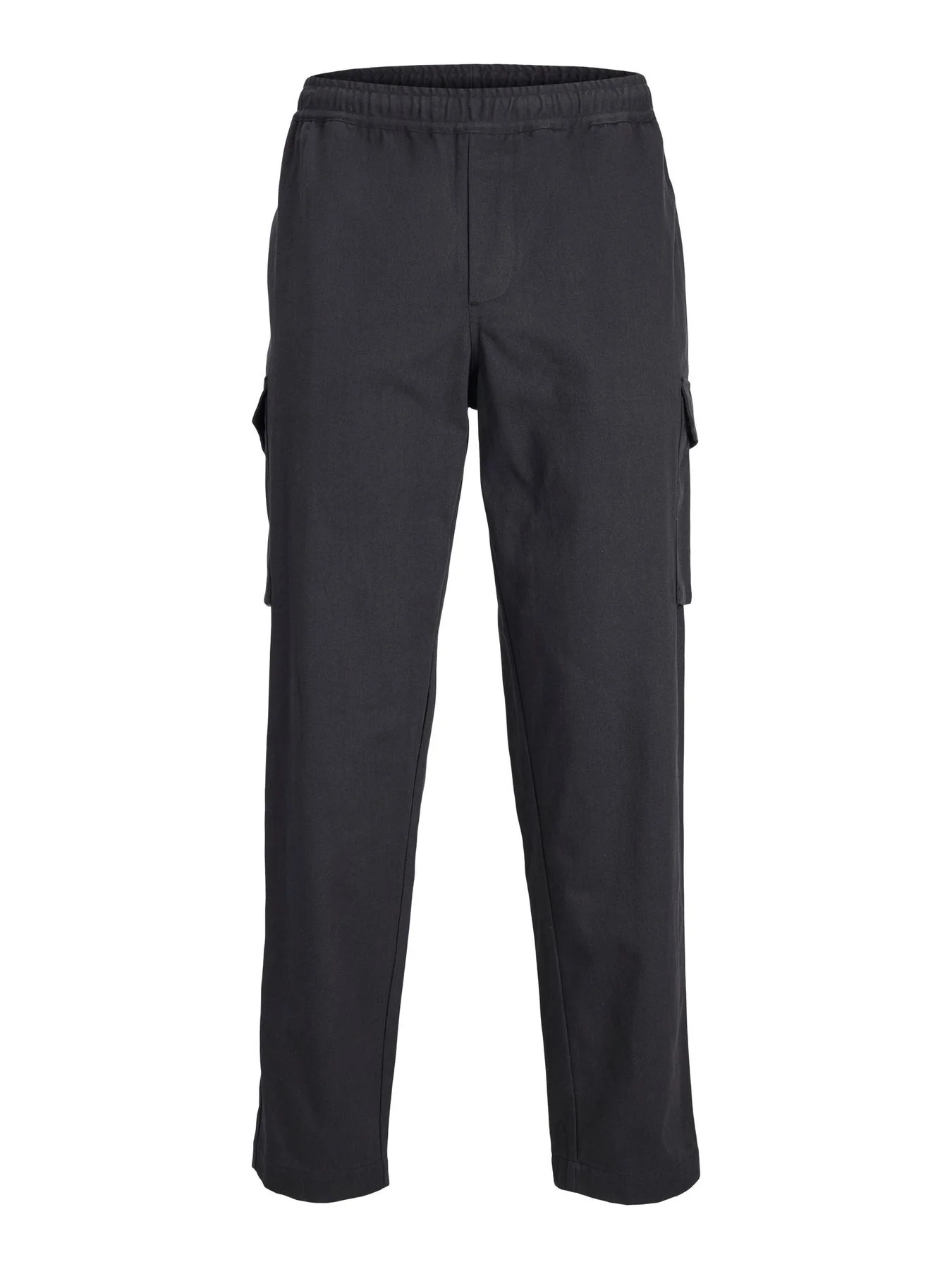 Pantalone Cargo con tasche laterali e elastico in vita, gamba morbida.