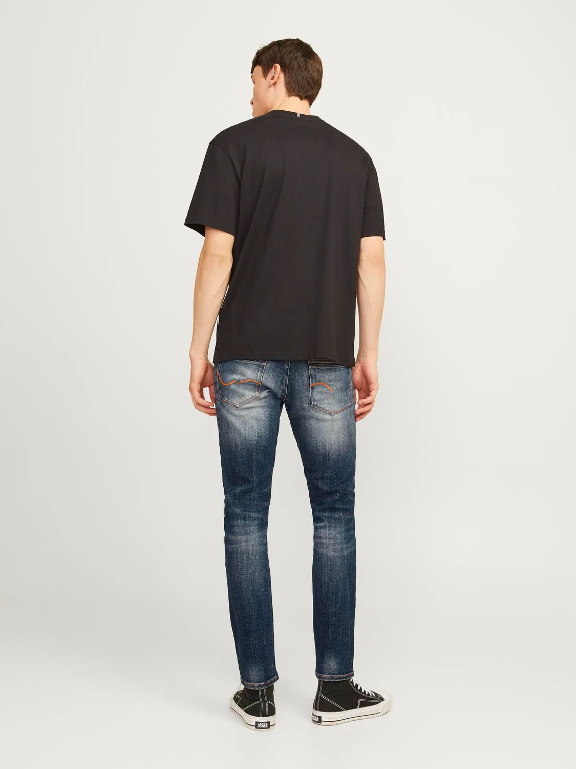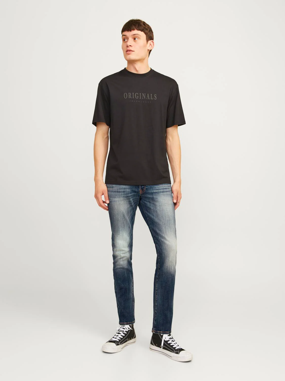 Jeans Glenn slim fit, vita bassa e patta con bottoni, lavaggio con effetto scolorito sulle gambe.